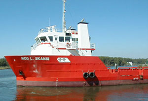 The Meg L. Skansi has below deck tankage of 50,000 gallons of fuel, 1,500 barrels of liquid mud